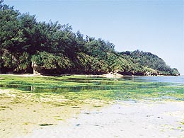 瀬名波・川平集落から長浜集落に向かう県道6号線坂道の中間あたりの左手に、コンクリートを流し、簡易舗装された道がつけられています。その道をたどり下がって行くと瀬名波ガーに達します。